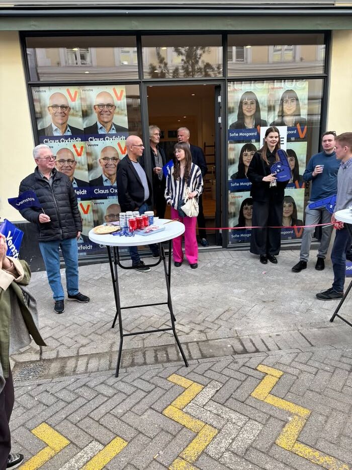 Venstre i Odense indviede i dag sin valgbutik i Kongensgade nabo til Winthers Kaffe. De 3 lokale folketingskandidater Claus Oxfeldt, Anders Fjord Nielsen og Sofie Mosgaard klippede sammen den røde snor og erklærede valgbutikken for åben. Og de første gæster kom forbi til en snak om valget. Der er åbent de fleste eftermiddage frem til valget den 24. marts.